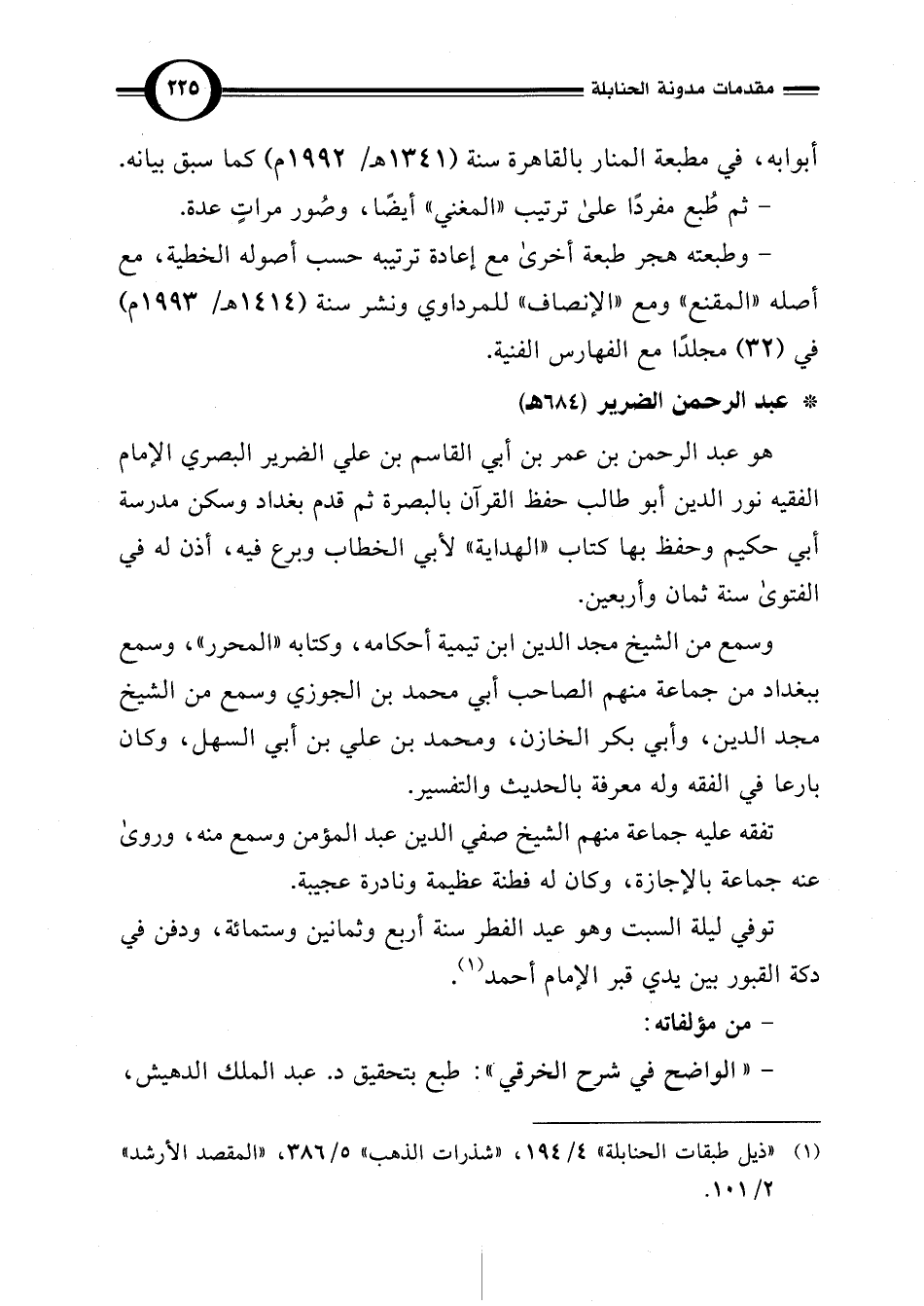 (¬1) "ذيل طبقات الحنابلة" 4/ 194، "شذرات الذهب" 5/ 386، "المقصد الأرشد" 2/ 101.