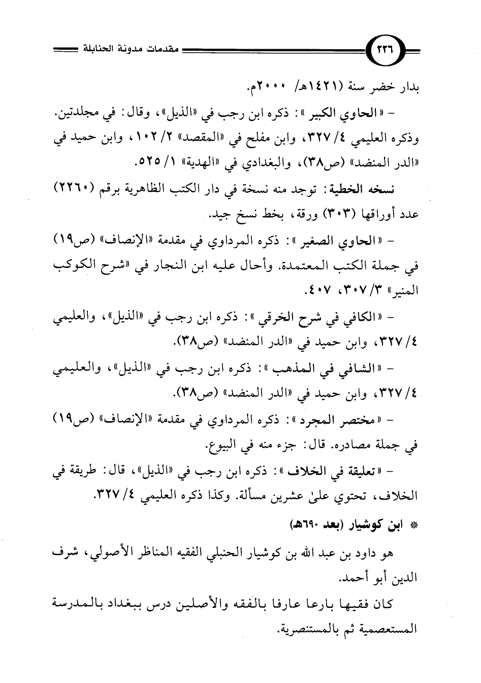 - "الحاوي الصغير": ذكره المرداوي في مقدمة "الإنصاف" (ص 19) في جملة الكتب المعتمدة. وأحال عليه ابن النجار في "شرح الكوكب المنير" 3/ 307، 407.