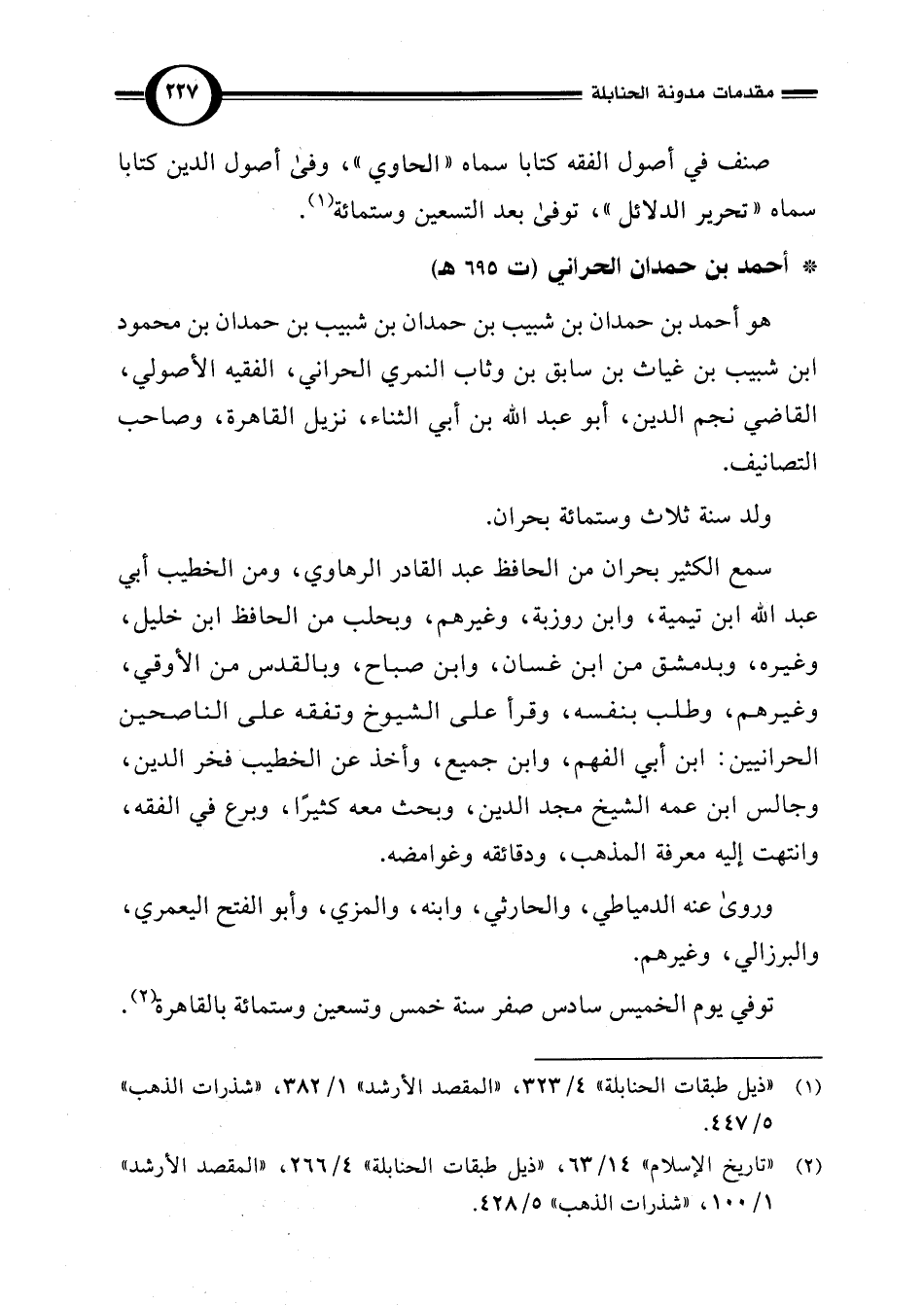(¬2) "تاريخ الإسلام" 14/ 63، "ذيل طبقات الحنابلة" 4/ 266، "المقصد الأرشد" 1/ 100، "شذرات الذهب" 5/ 428.