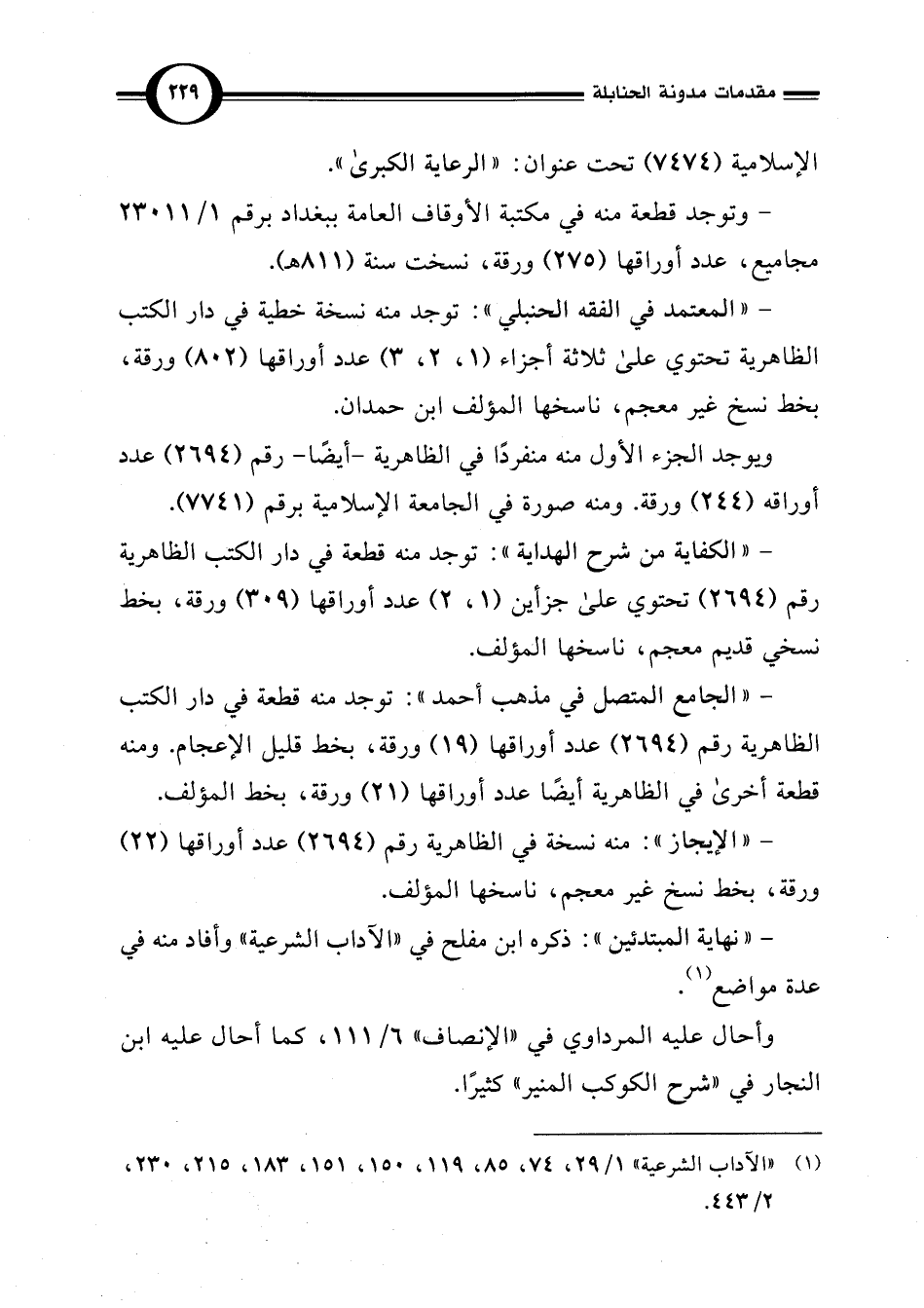 (¬1) "الآداب الشرعية" 1/ 29، 74، 85، 119، 150، 151، 183، 215، 230، 2/ 443.