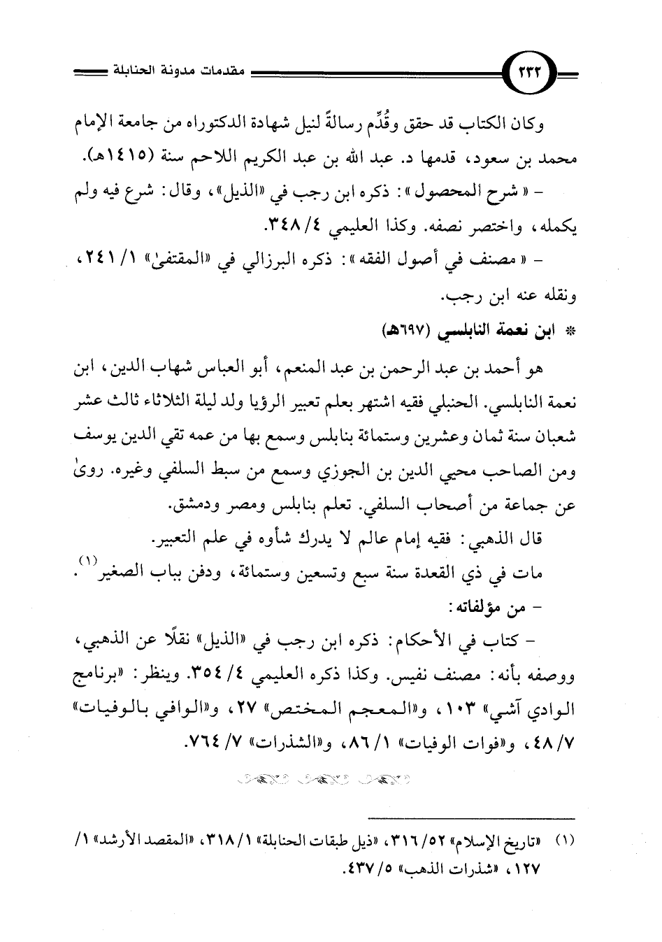 (¬1) "تاريخ الإسلام" 52/ 316، "ذيل طبقات الحنابلة" 1/ 318، "المقصد الأرشد" 1/ 127، "شذرات الذهب" 5/ 437.