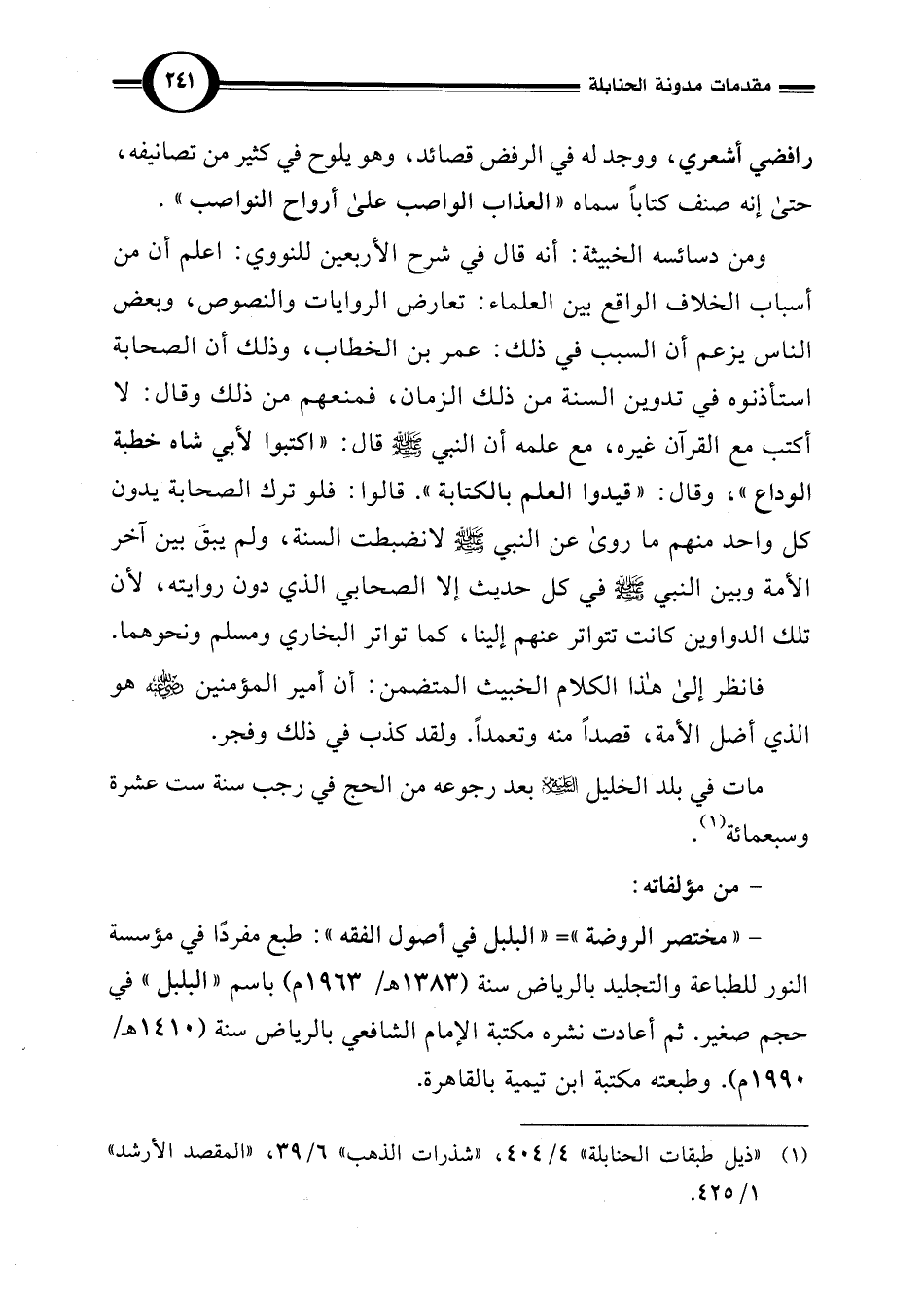 (¬1) "ذيل طبقات الحنابلة" 4/ 404، "شذرات الذهب" 6/ 39، "المقصد الأرشد" 1/ 425.