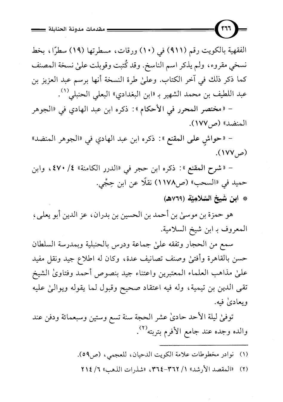 (¬2) "المقصد الأرشد" 1/ 362 - 364، "شذرات الذهب" 6/ 214.