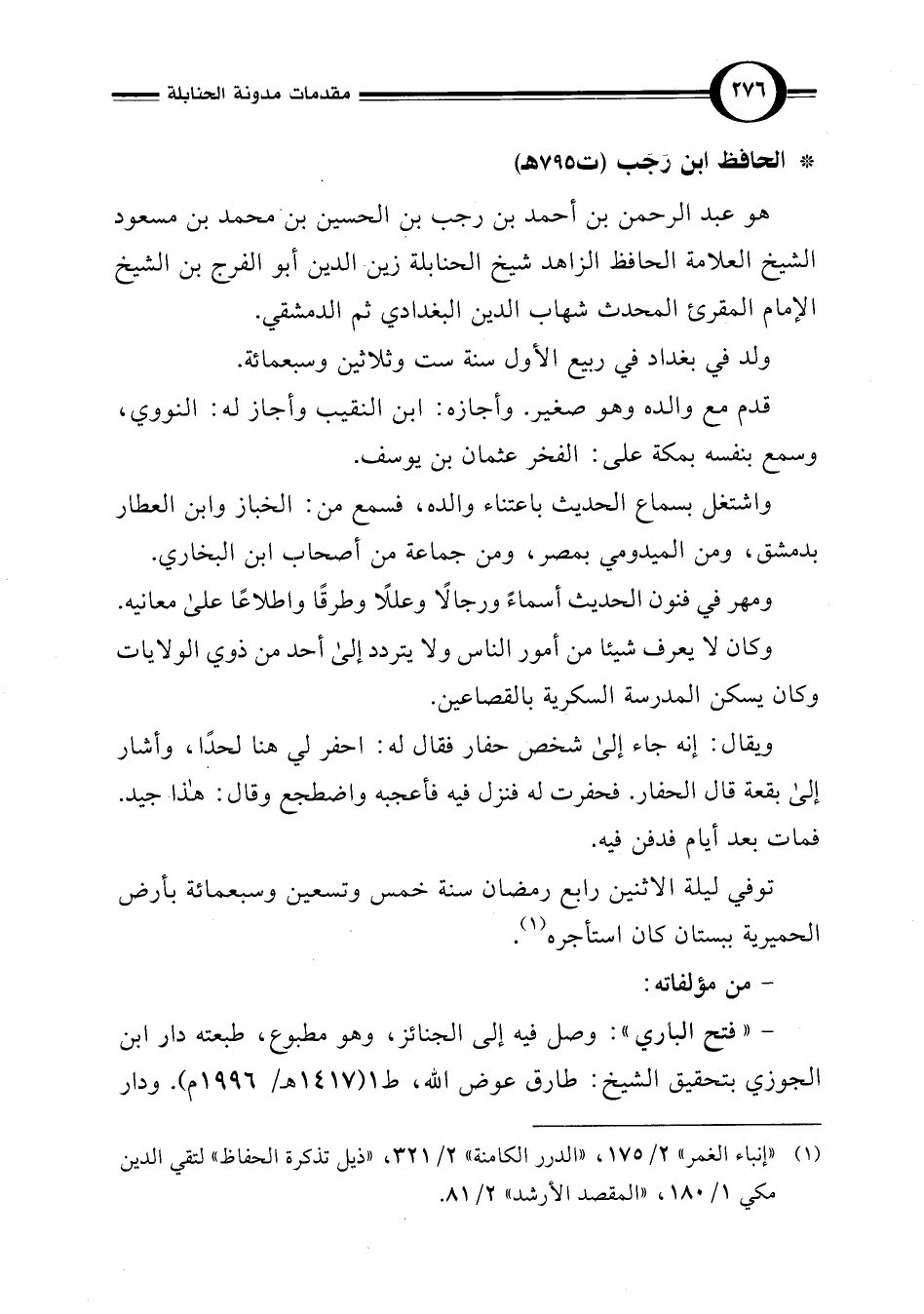 هو عبد الرحمن بن أحمد بن رجب ببن الحسين بن محمد بن مسعود الشيخ العلامة الحافظ الزاهد شيخ الحنابلة زين الدين أبو الفرج بن الشيخ الإمام المقرئ المحدث شهاب الدين البغدادي ثم الدمشقي.