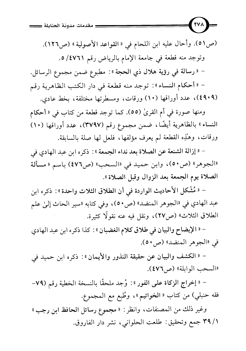 وغير ذلك من المصنفات، وانظر: "مجموع رسائل الحافظ ابن رجب" 1/ 39 جمع وتحقيق: طلعت الحلواني، نشر دار الفاروق.