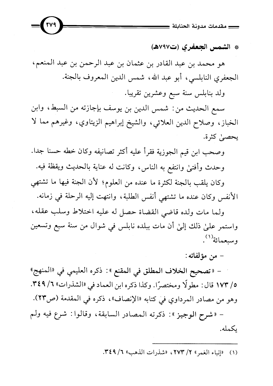 (¬1) "إنباء الغمر" 2/ 273، "شذرات الذهب" 6/ 349.