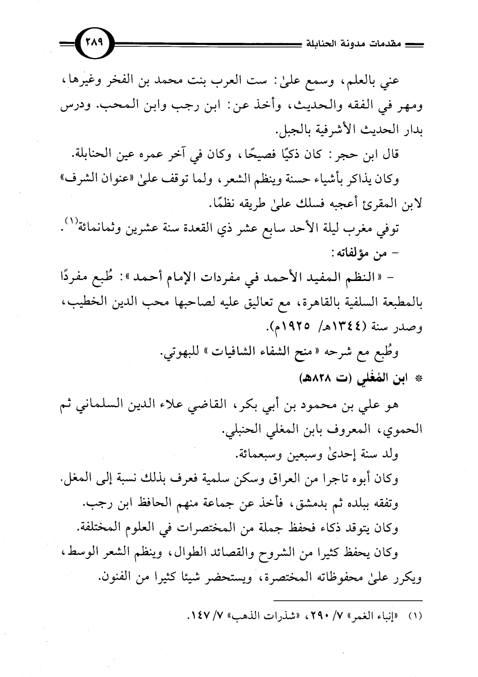 (¬1) "إنباء الغمر" 7/ 290، "شذرات الذهب" 7/ 147.