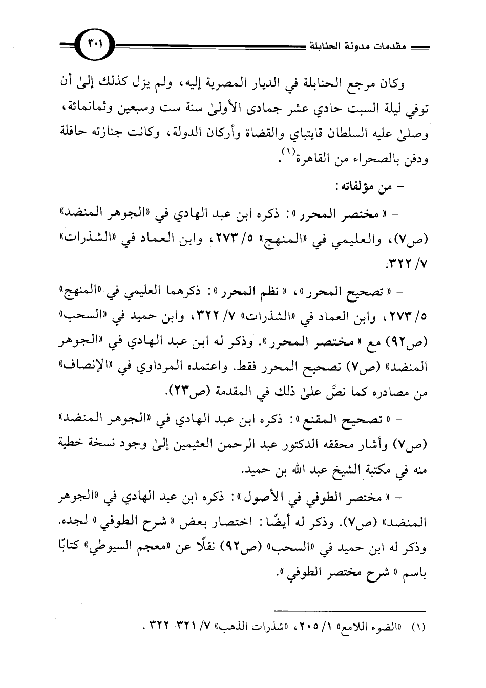 - " مختصر المحرر": ذكره ابن عبد الهادي في "الجوهر المنضد" (ص 7)، والعليمي في "المنهج" 5/ 273، وابن العماد في "الشذرات" 7/ 322.