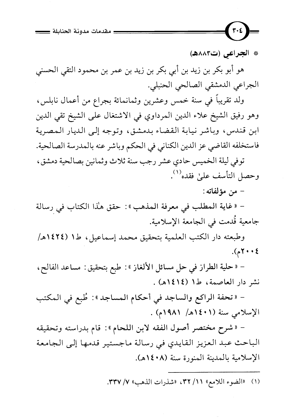 (¬1) "الضوء اللامع" 11/ 32، "شذرات الذهب" 7/ 337.