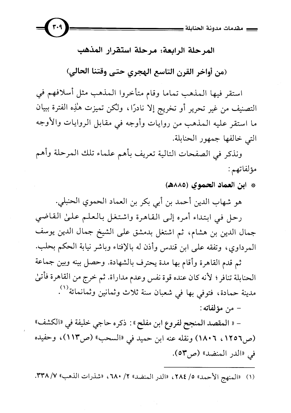 (¬1) "المنهج الأحمد" 5/ 284، "الدر المنضد" 2/ 680، "شذرات الذهب" 7/ 338.