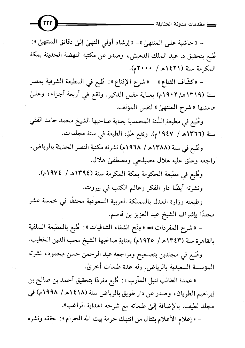 - "حاشية على المنتهى" - "إرشاد أولي النهى إلى دقائق المنتهى": طُبع بتحقيق د. عبد الملك الدهيش، وصدر عن مكتبة النهضة الحديثة بمكة المكرمة سنة (1421 هـ/ 2000 م).