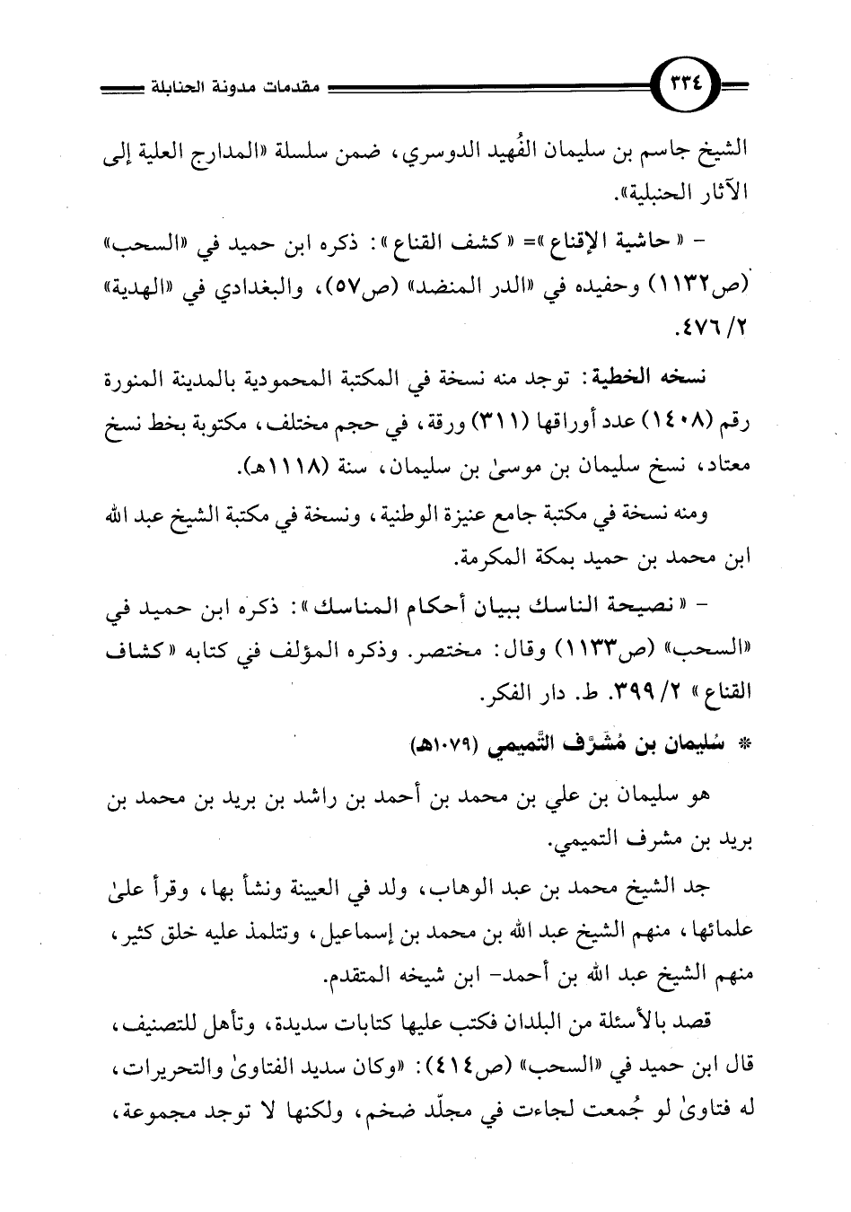 - "حاشية الإقناع" = "كشف القناع": ذكره ابن حميد في "السحب" (ص 1132) وحفيده في "الدر المنضد" (ص 57)، والبغدادي في "الهدية" 2/ 476.