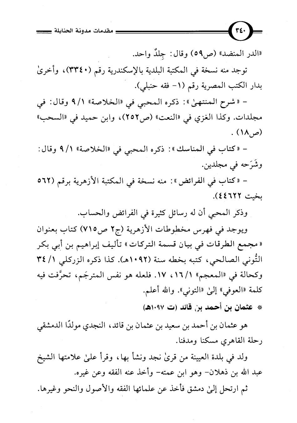 - "شرح المنتهى": ذكره المحبي في "الخلاصة" 1/ 9 وقال: في مجلدات. وكذا الغزي في "النعت" (ص 252)، وابن حميد في "السحب" (ص 18).