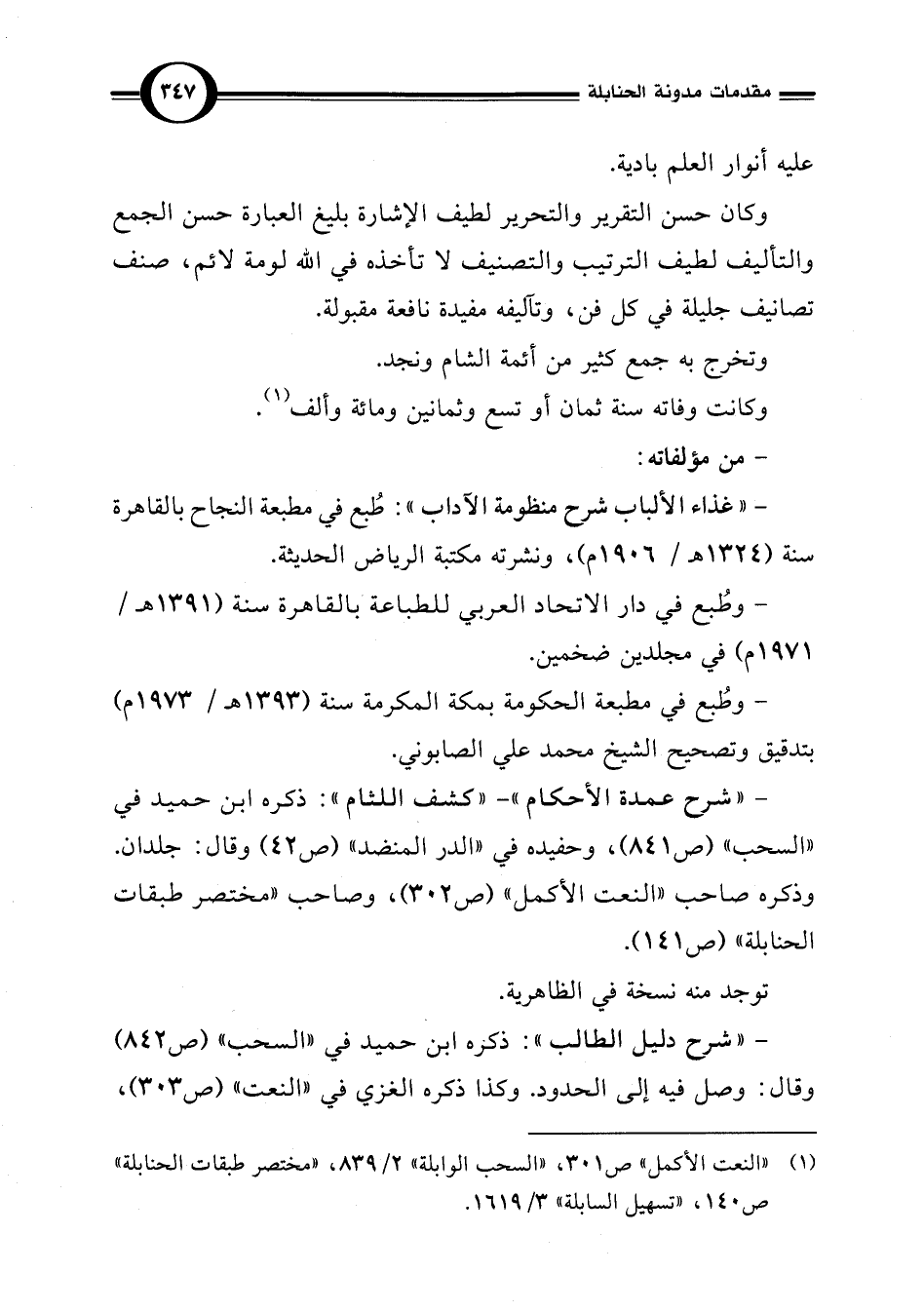 (¬1) "النعت الأكمل" ص 301، "السحب الوابلة" 2/ 839، "مختصر طبقات الحنابلة" ص 140، "تسهيل السابلة" 3/ 1619.