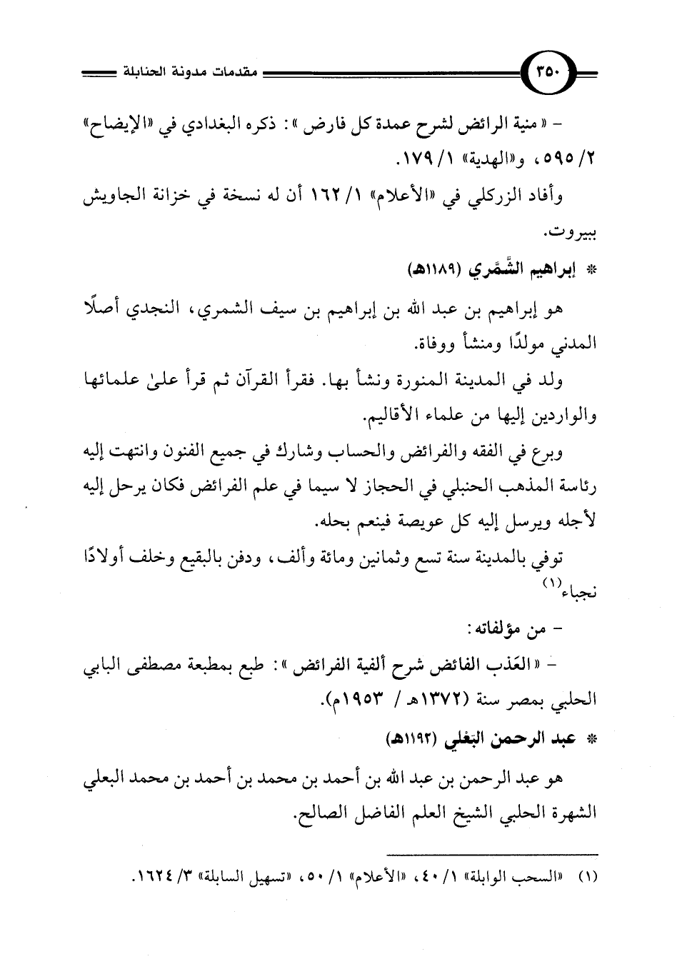 (¬1) "السحب الوابلة" 1/ 40، "الأعلام" 1/ 50، "تسهيل السابلة" 3/ 1624.