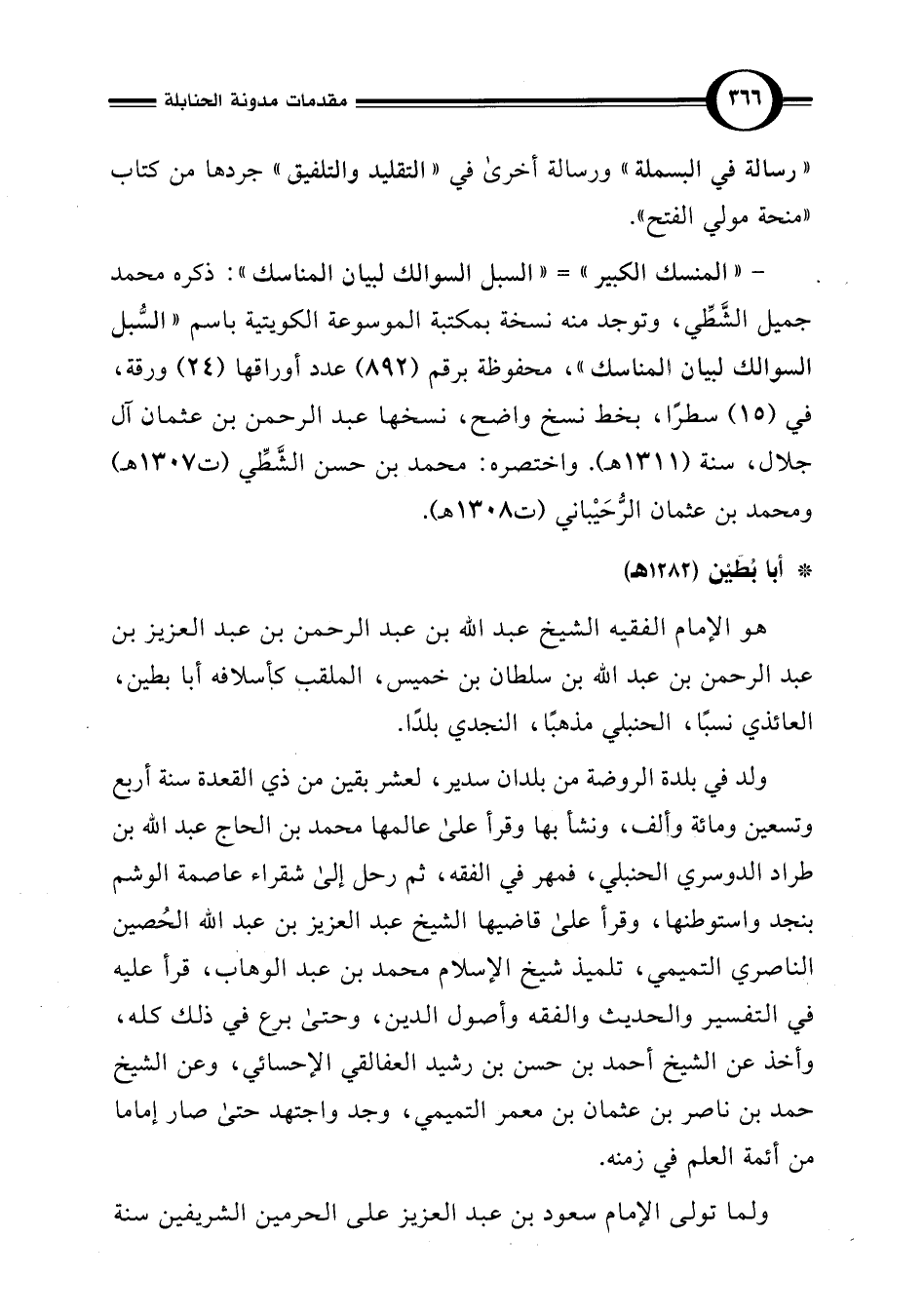 هو الإمام الفقيه الشيخ عبد اللَّه بن عبد الرحمن بن عبد العزيز بن عبد الرحمن بن عبد اللَّه بن سلطان بن خميس، الملقب كأسلافه أبا بطين، العائذي نسبًا، الحنبلي مذهبًا، النجدي بلدًا.