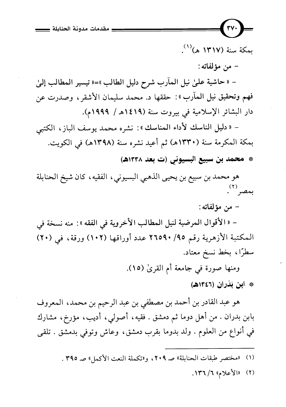 (¬1) "مختصر طبقات الحنابلة" ص 209، و"تكملة النعت الأكمل" صـ 395.