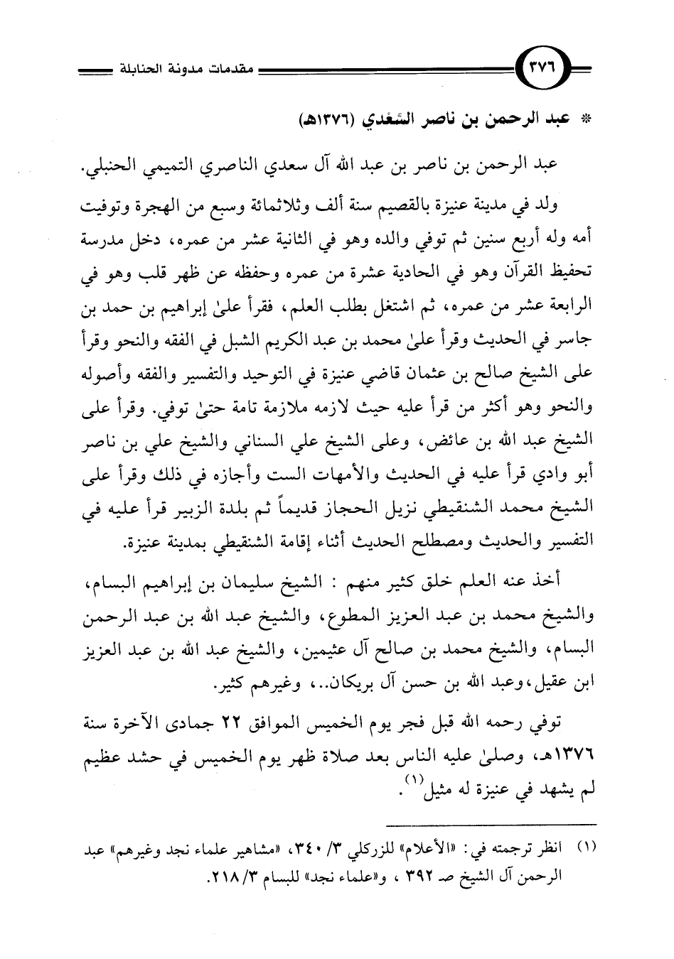 * عبد الرحمن بن ناصر السَّعْدي (1376 هـ)