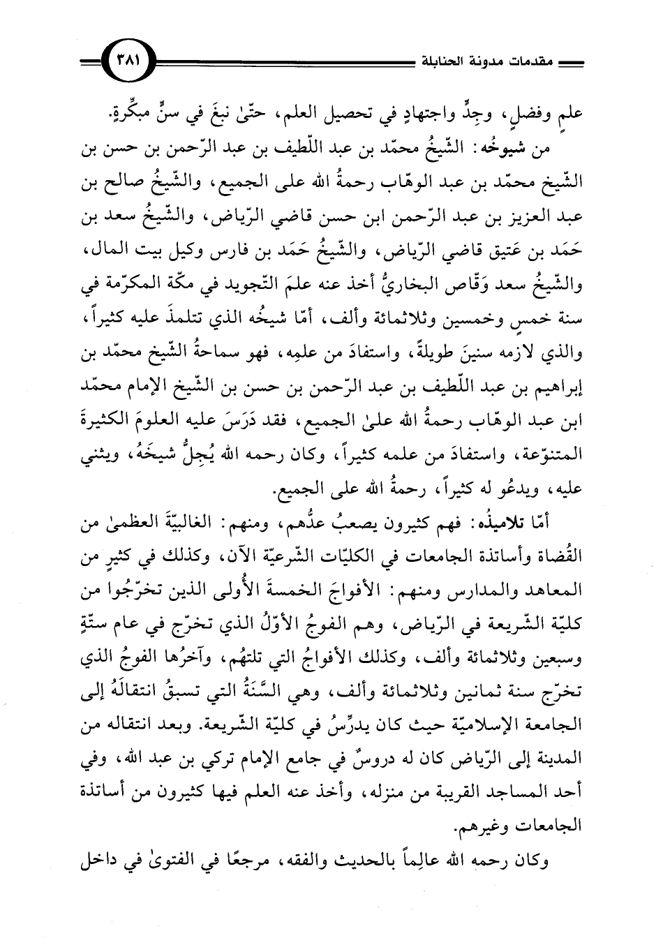 أمّا تلاميذُه: فهم كثيرون يصعبُ عدُّهم، ومنهم: الغالبيّةَ العظمى من القُضاة وأساتذة الجامعات في الكليّات الشّرعيّة الآن، وكذلك في كثيرٍ من المعاهد والمدارس ومنهم: الأفواجَ الخمسةَ الأُولى الذين تخرّجُوا من كليّة الشّريعة في الرّياض، وهم الفوجُ الأوّلُ الذي تخرّج في عام ستّةٍ وسبعين وثلاثمائة وألف، وكذلك الأفواجُ التي تلتهُم، وآخرُها الفوجُ الذي تخرّج سنة ثمانين وثلاثمائة وألف، وهي السَّنَةُ التي تسبقُ انتقالَهُ إلى الجامعة الإسلاميّة حيث كان يدرِّسُ في كليّة الشّريعة. وبعد انتقاله من المدينة إلى الرّياض كان له دروسٌ في جامع الإمام تركي بن عبد اللَّه، وفي أحد المساجد القريبة من منزله، وأخذ عنه العلم فيها كثيرون من أساتذة الجامعات وغيرهم.