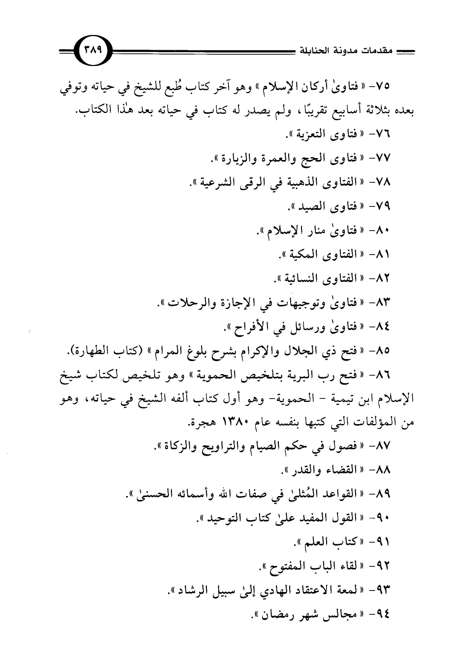 86 - "فتح رب البرية بتلخيص الحموية" وهو تلخيص لكتاب شيخ الإسلام ابن تيمية - الحموية - وهو أول كتاب ألفه الشيخ في حياته، وهو من المؤلفات التي كتبها بنفسه عام 1380 هجرة.