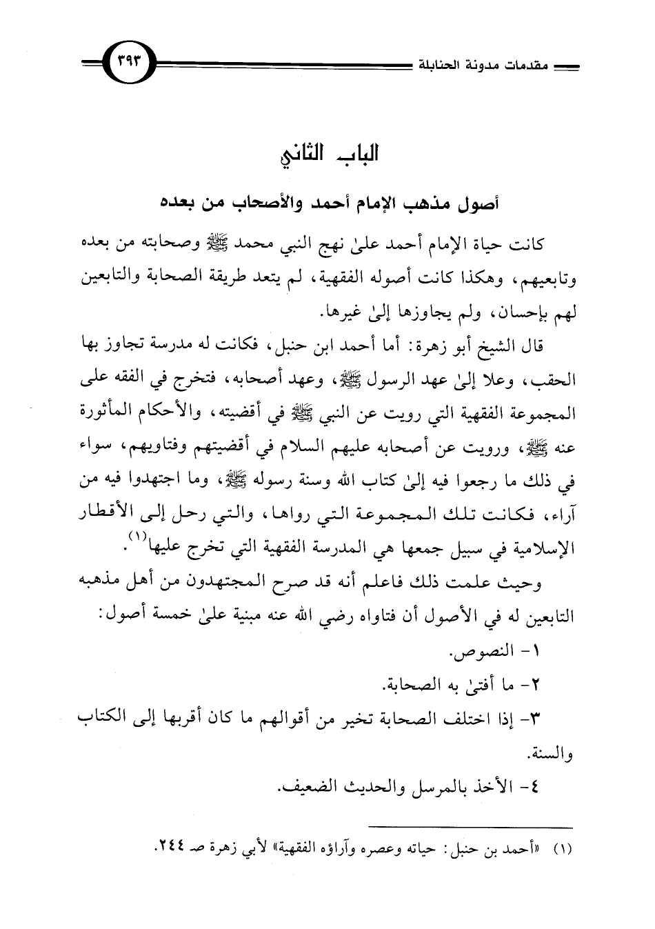 الباب الثاني أصول مذهب الإمام أحمد والأصحاب من بعده