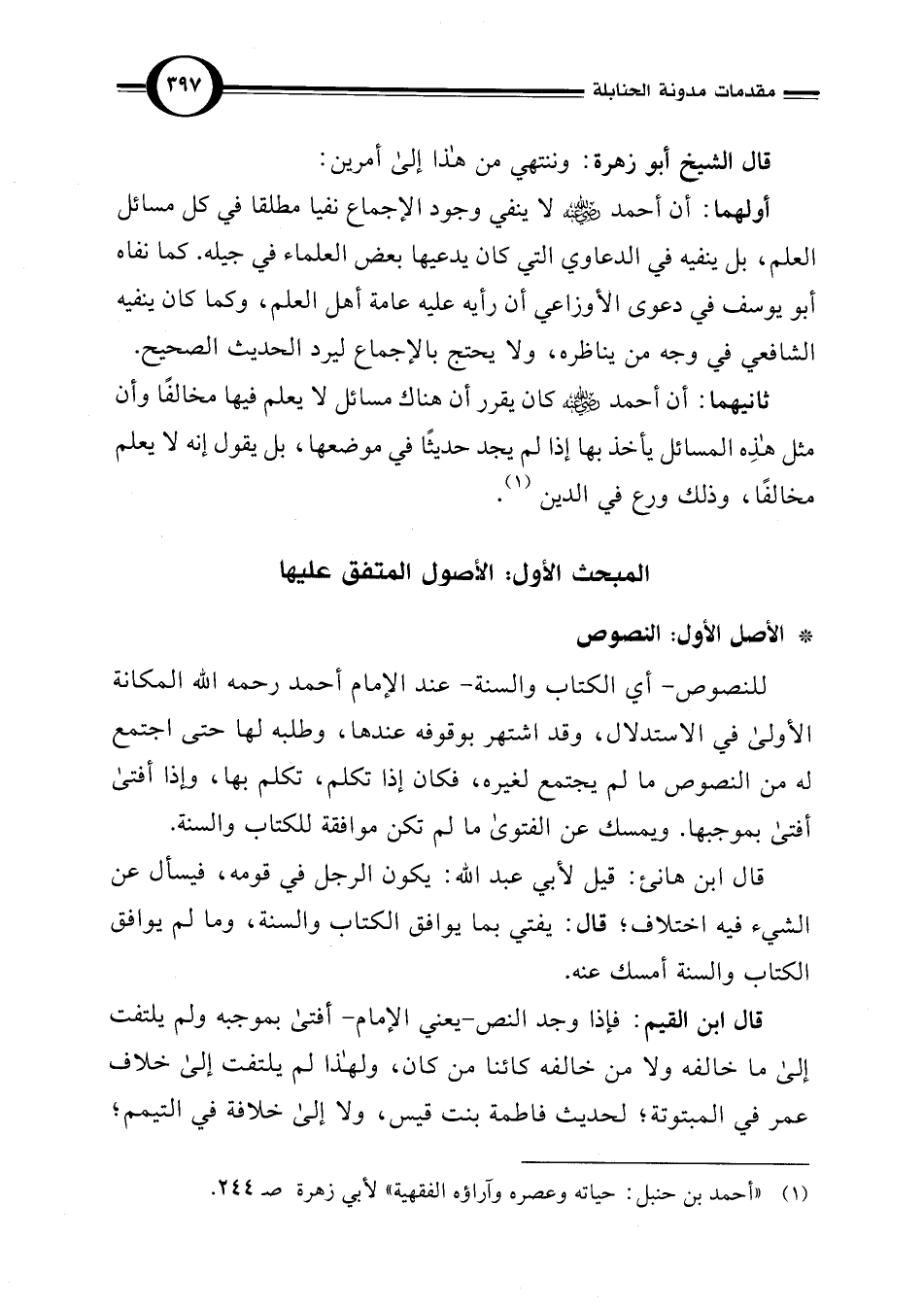 (¬1) "أحمد بن حنبل: حياته وعصره وآراؤه الفقهية" لأبي زهرة صـ 244.