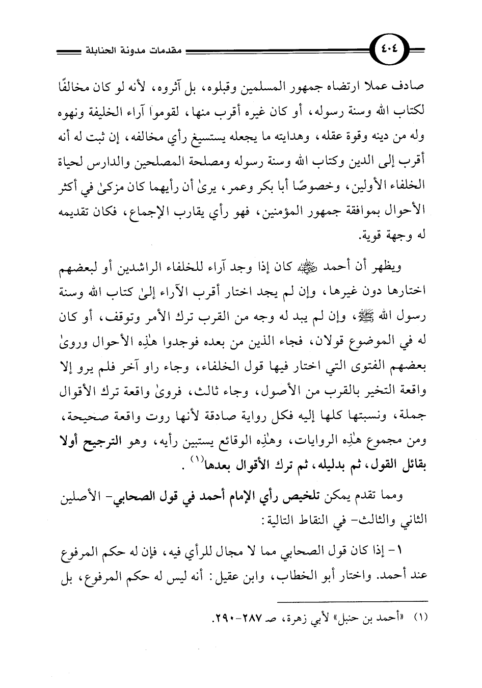 (¬1) "أحمد بن حنبل" لأبي زهرة، صـ 287 - 290.