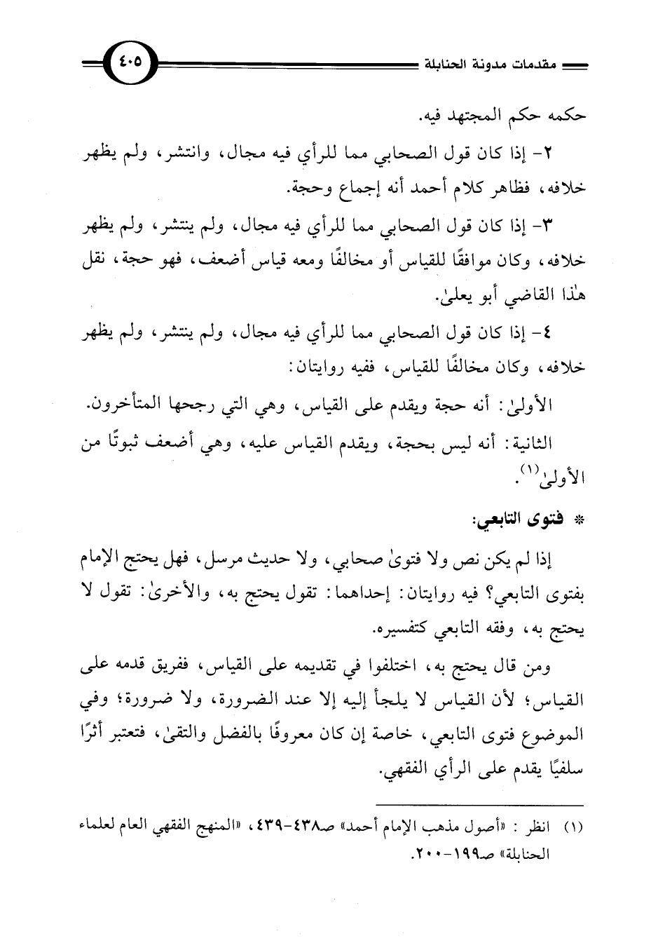 (¬1) انظر: "أصول مذهب الإمام أحمد" صـ 438 - 439، "المنهج الفقهي العام لعلماء الحنابلة" صـ 199 - 200.
