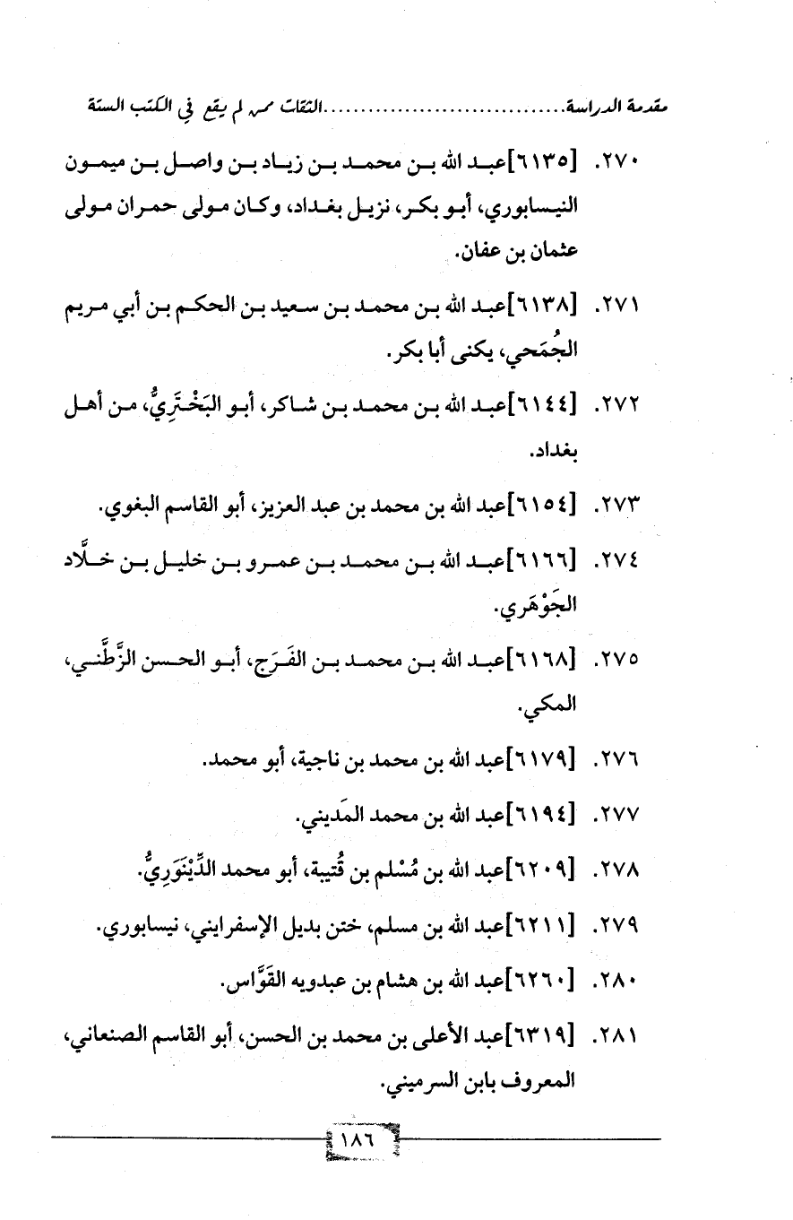 270. [6135] عبد الله بن محمد بن زياد بن واصل بن ميمون النيسابوري، أبو بكر، نزيل بغداد، وكان مولى حمران مولى عثمان بن عفان.