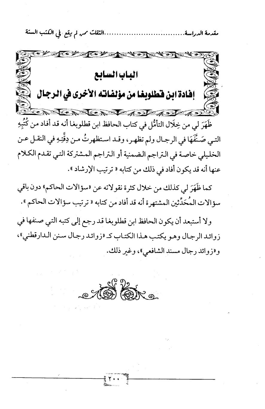 ولا أستبعد أن يكون الحافظ ابن قطلوبغا قد رجع إلى كتبه التي صنفها في زوائد الرجال وهو يكتب هذا الكتاب كـ «زوائد رجال سنن الدارقطني»، و «زوائد رجال مسند الشافعي»، وغير ذلك.