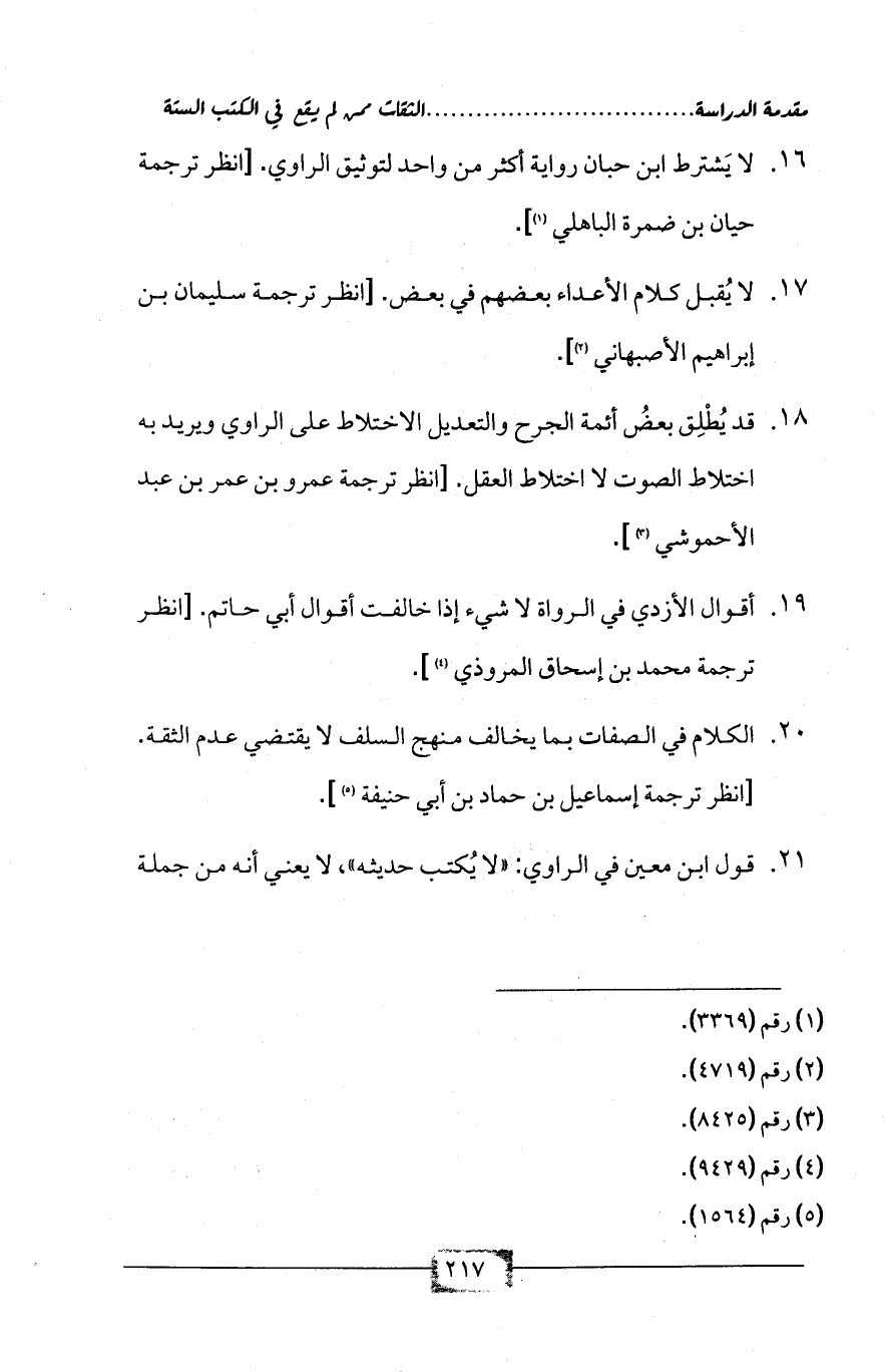 17. لا يُقبل كلام الأعداء بعضهم في بعض. [انظر ترجمة سليمان بن إبراهيم الأصبهاني (¬2)].