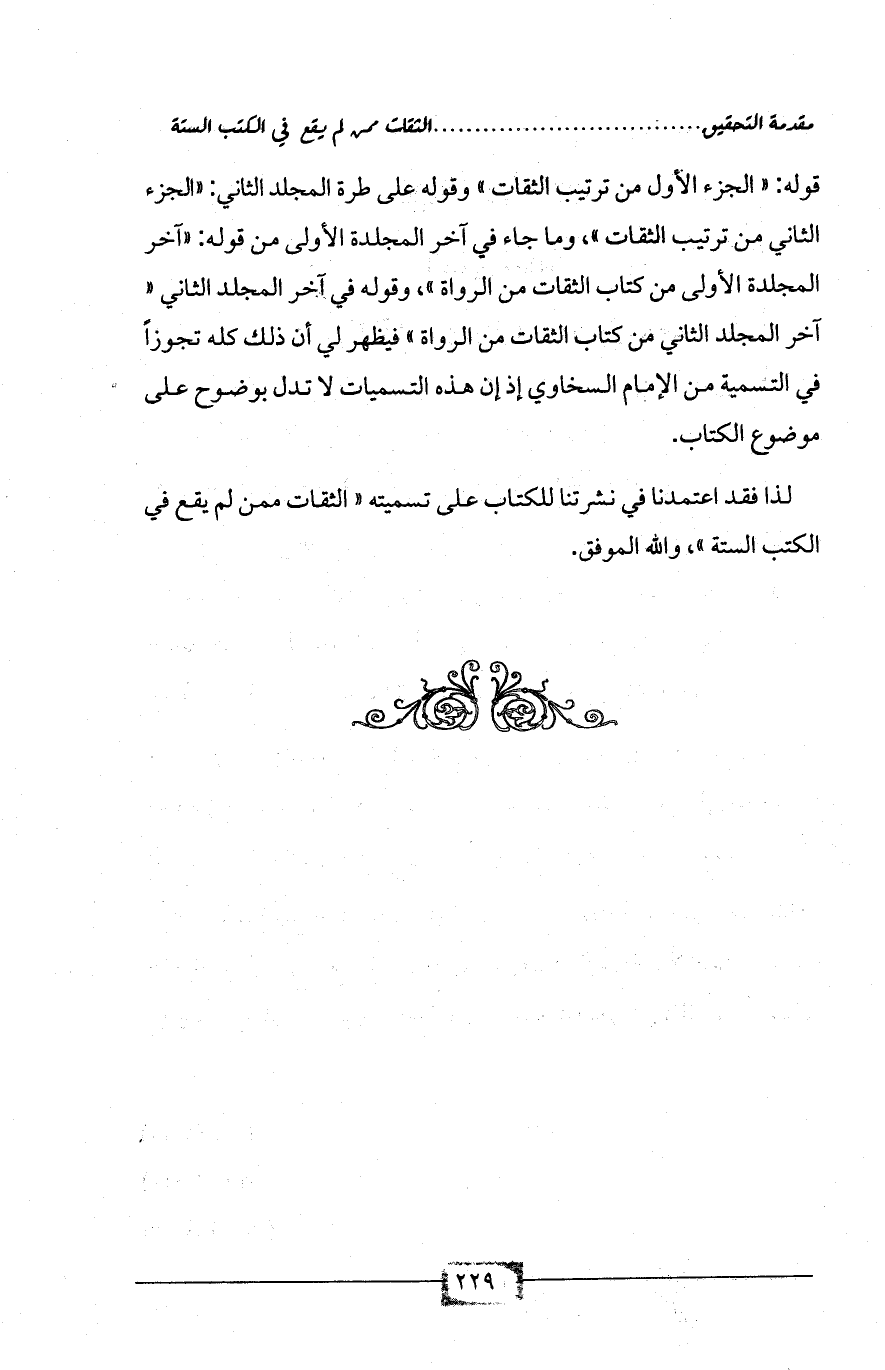 لذا فقد اعتمدنا في نشرتنا للكتاب على تسميته «الثقات ممن لم يقع في الكتب الستة»، والله الموفق.