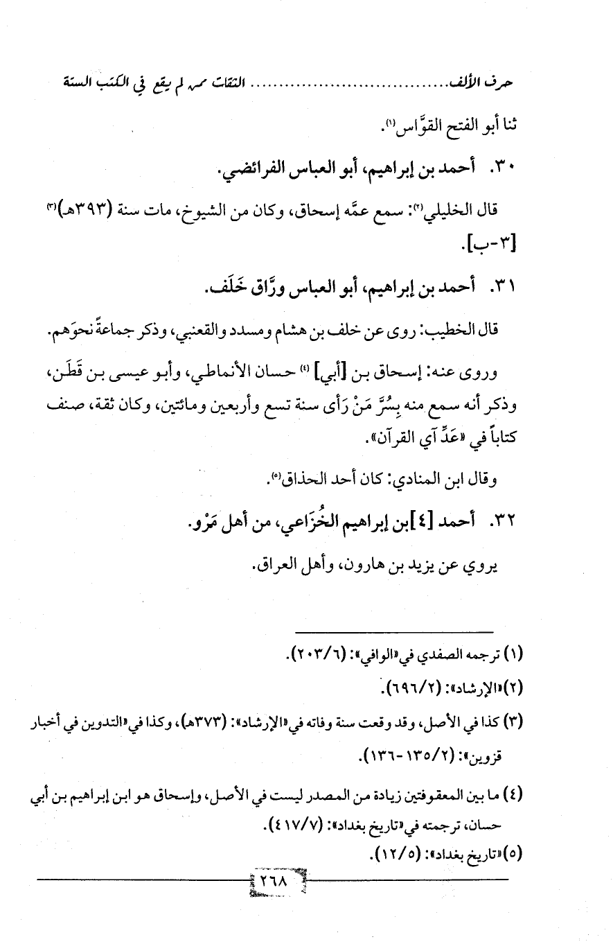 31 - أحمد بن إبراهيم، أبو العباس ورَّاق خَلَف.
