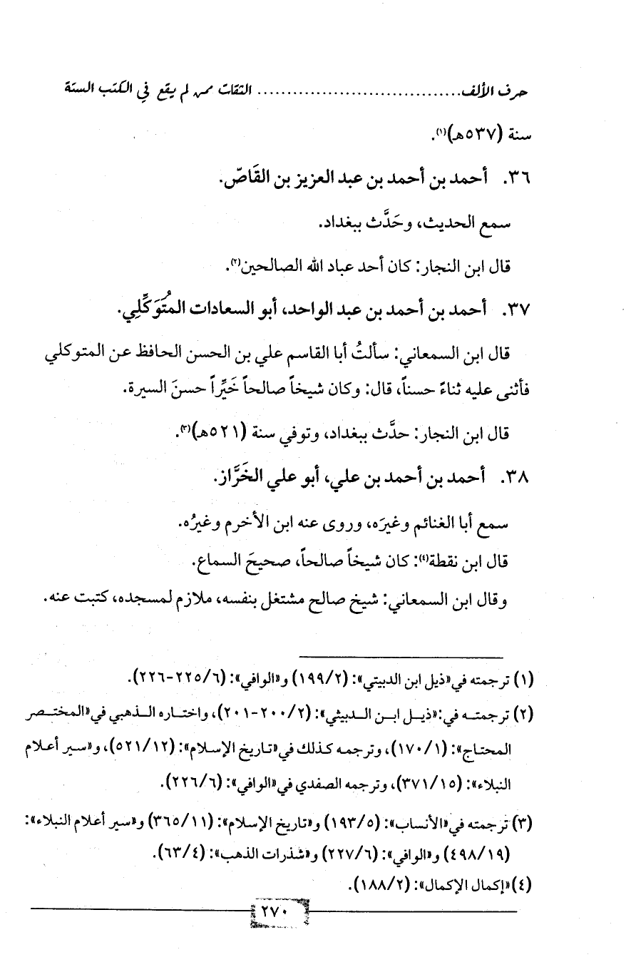 37 - أحمد بن أحمد بن عبد الواحد، أبو السعادات المُتَوَكِّلِي.