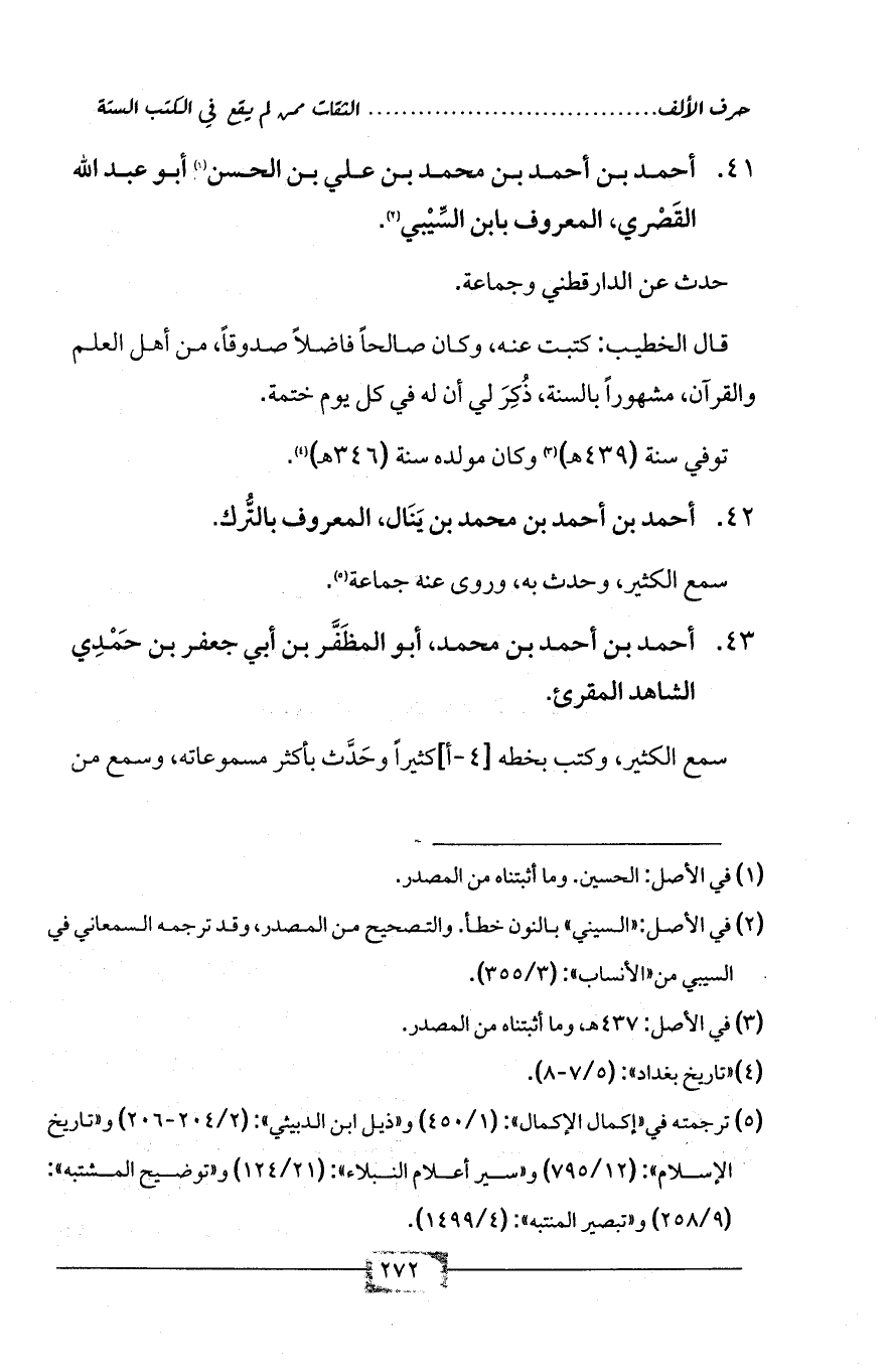 (¬2) في الأصل: «السيني» بالنون خطأ. والتصحيح من المصدر، وقد ترجمه السمعاني في السيبي من «الأنساب»: (3/ 355).
