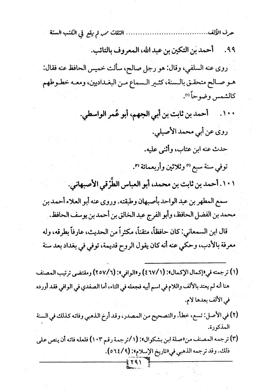 (¬1) ترجمته في «إكمال الإكمال»: (1/ 467) و «الوافي»: (6/ 257) ومقتضى ترتيب المصنف هنا أنه لم يعتد بالألف واللام في اسم أبيه فجعله في التاء، أما الصفدي في الوافي فقد أورده في الألف بعدها لام.