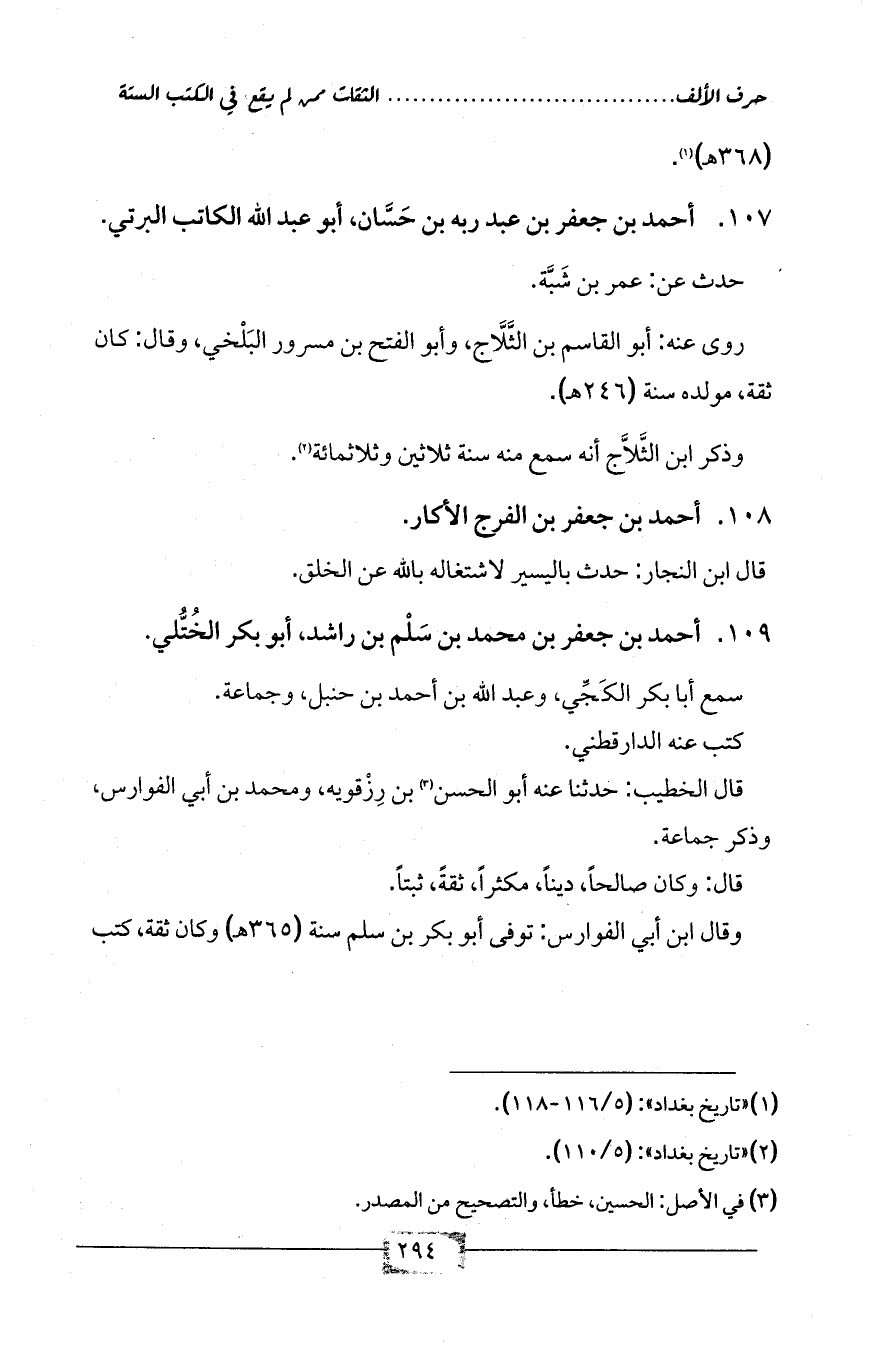 109 - أحمد بن جعفر بن محمد بن سَلْم بن راشد، أبو بكر الخُتُّلي.