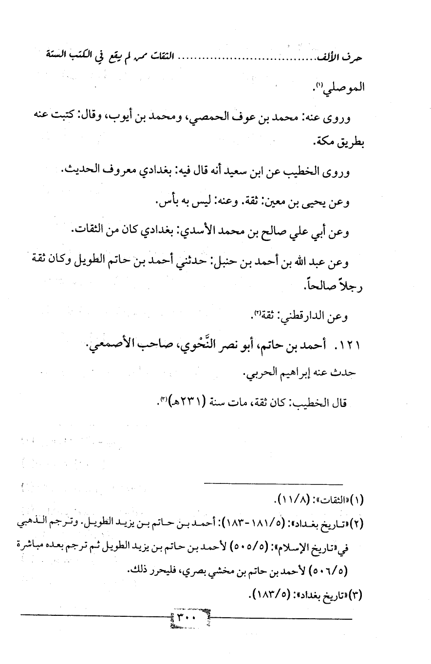 (¬2) «تاريخ بغداد»: (5/ 181 - 183): أحمد بن حاتم بن يزيد الطويل. وترجم الذهبي في «تاريخ الإسلام»: (5/ 505) لأحمد بن حاتم بن يزيد الطويل ثم ترجم بعده مباشرة (5/ 506) لأحمد بن حاتم بن مخشي بصري، فليحرر ذلك.