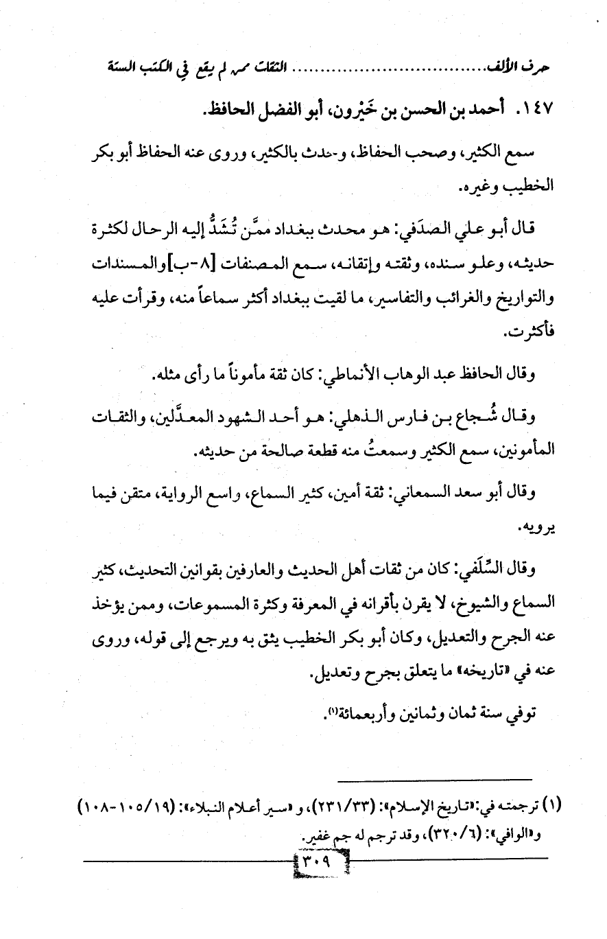 147 - أحمد بن الحسن بن خَيْرون، أبو الفضل الحافظ.