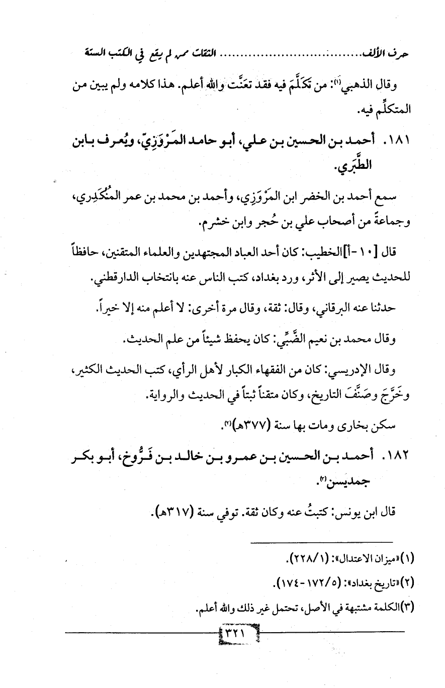 181 - أحمد بن الحسين بن علي، أبو حامد المَرْوَزِيّ، ويُعرف بابن الطَّبَري.