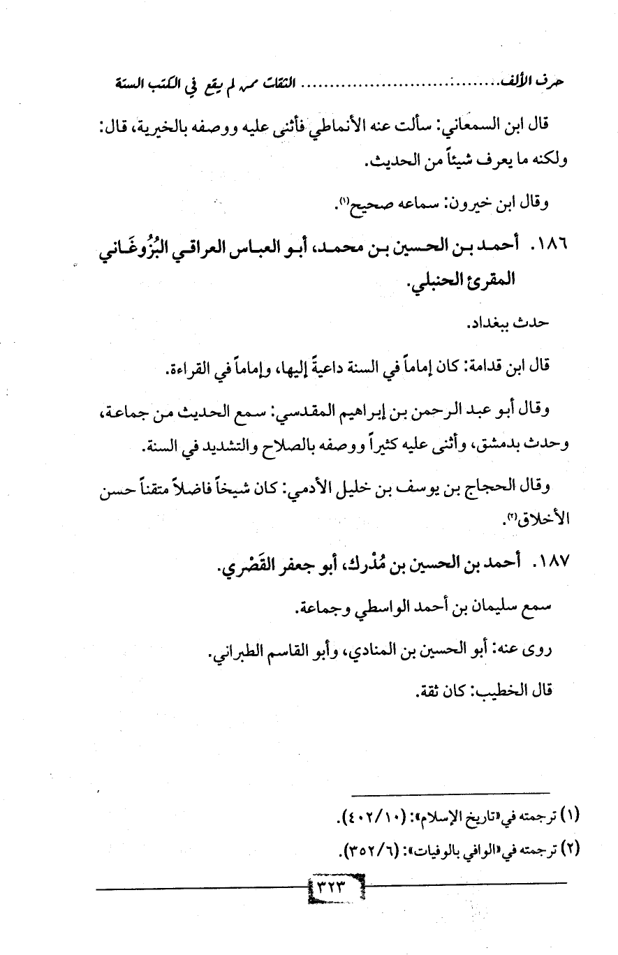 186 - أحمد بن الحسين بن محمد، أبو العباس العراقي البُزُوغَاني المقرئ الحنبلي.