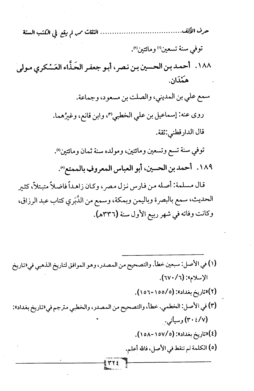 188 - أحمد بن الحسين بن نصر، أبو جعفر الحَذَّاء العَسْكري مولى هَمْدَان.