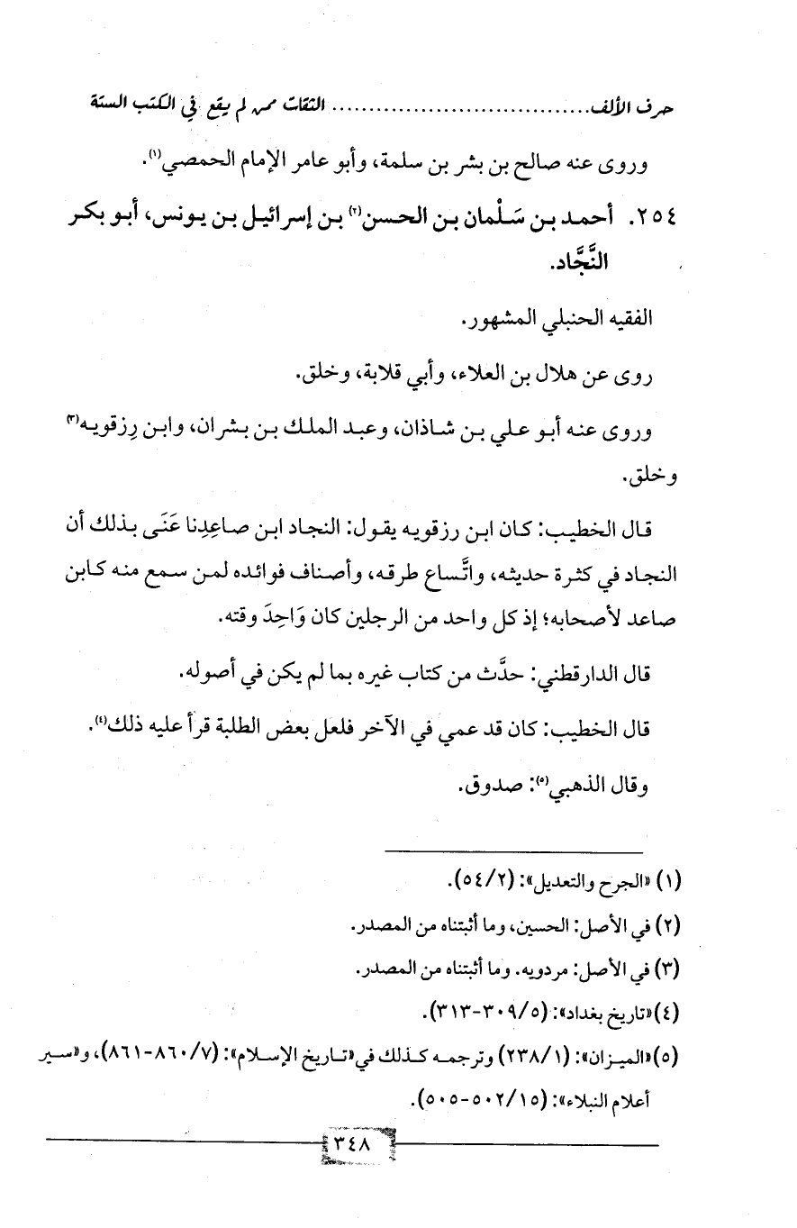 254 - أحمد بن سَلْمان بن الحسن (¬2) بن إسرائيل بن يونس، أبو بكر النَّجَّاد.