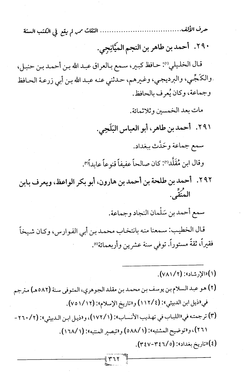 292 - أحمد بن طلحة بن أحمد بن هارون، أبو بكر الواعظ، ويعرف بابن المُنَقِّى.