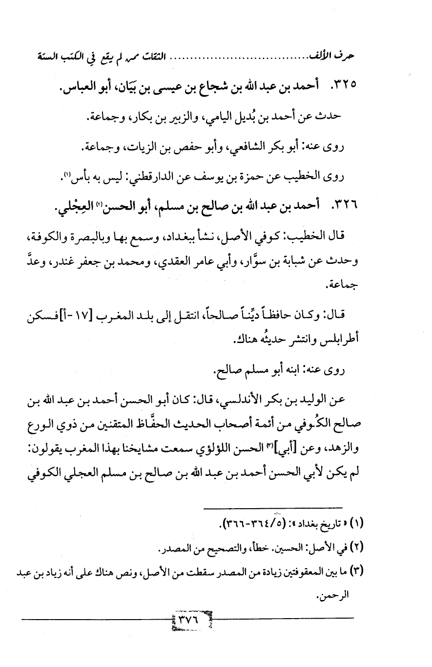 326 - أحمد بن عبد الله بن صالح بن مسلم، أبو الحسن (¬2) العِجْلي.