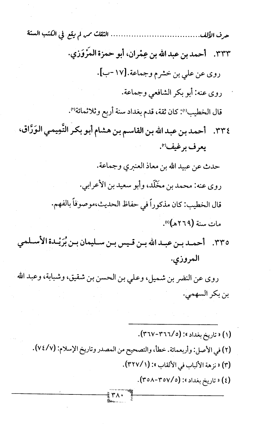 (¬4) «تاريخ بغداد»: (5/ 357 - 358).