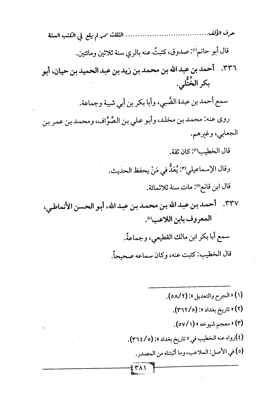 336 - أحمد بن عبد الله بن محمد بن زيد بن عبد الحميد بن حيان، أبو بكر الخُتُّلي.