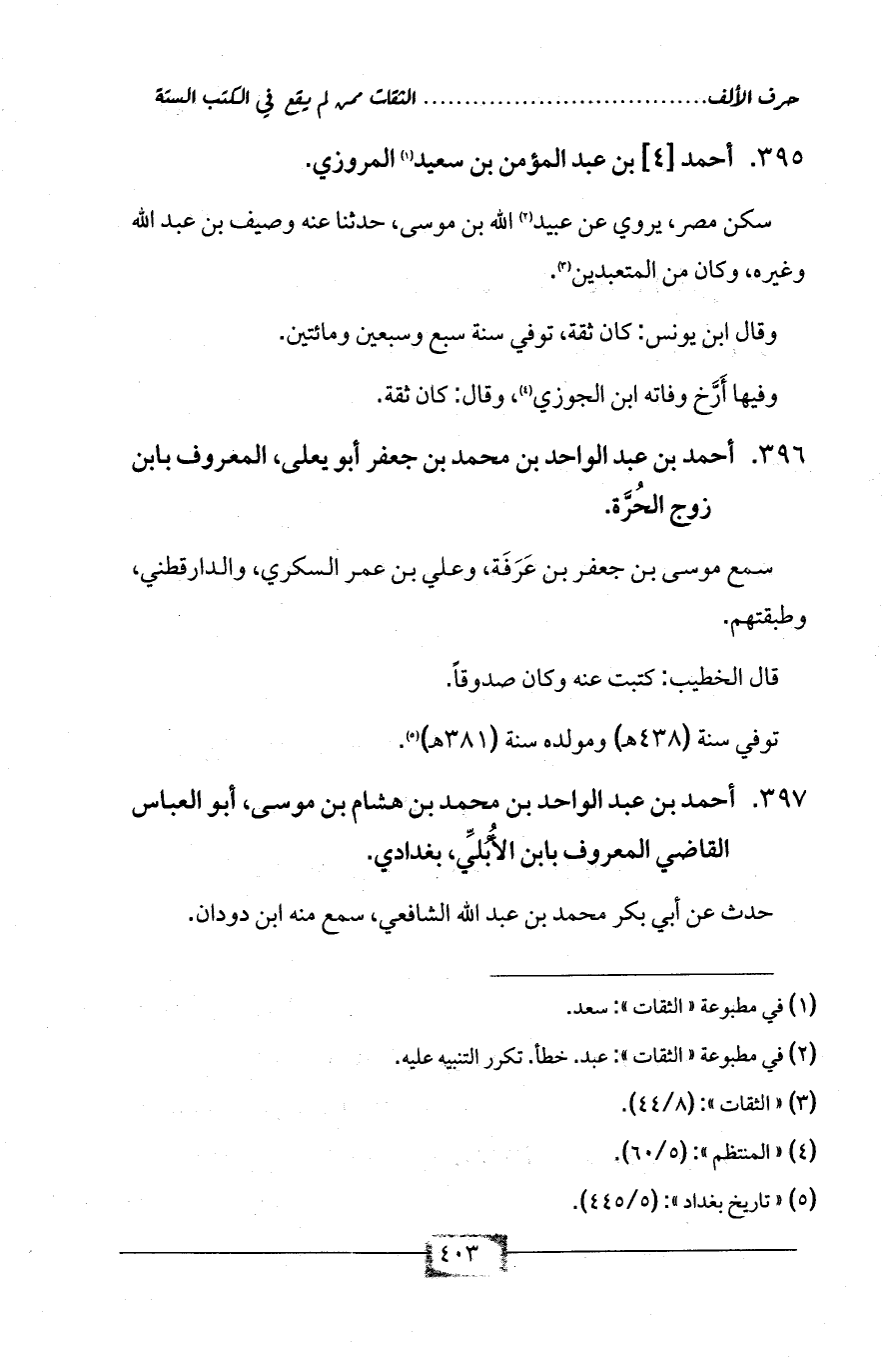 396 - أحمد بن عبد الواحد بن محمد بن جعفر أبو يعلى، المعروف بابن زوج الحُرَّة.
