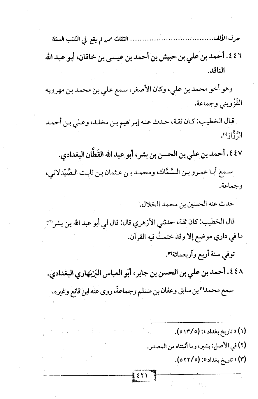 (¬3) «تاريخ بغداد»: (5/ 522).
