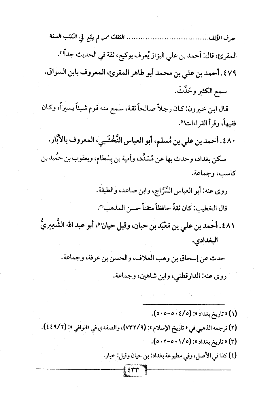 479 - أحمد بن علي بن محمد أبو طاهر المقرئ، المعروف بابن السواق.